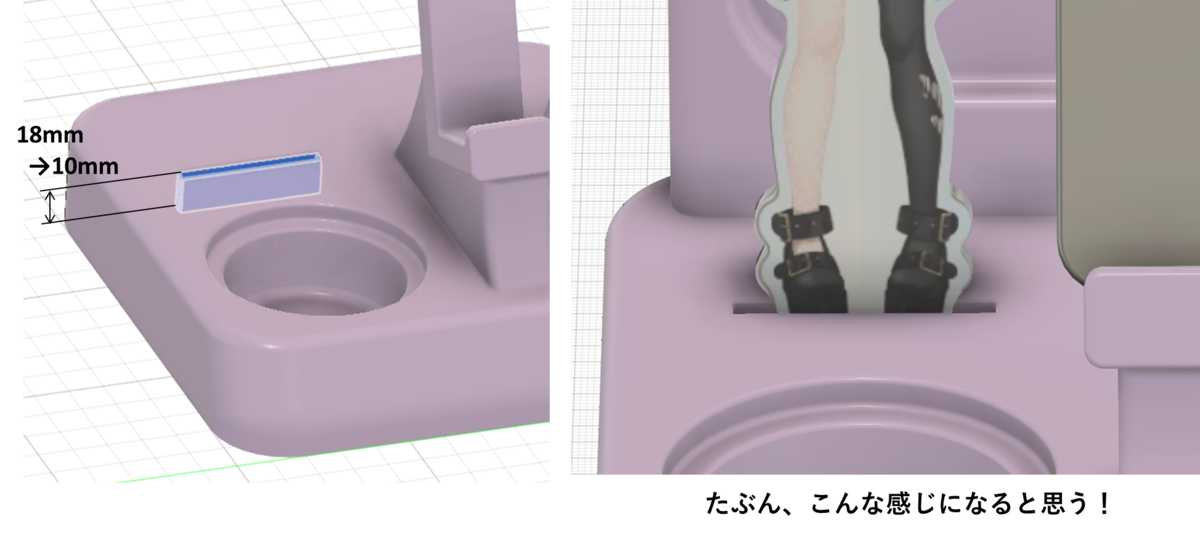 これにより、底付きさせて、もともとアクスタにある底面で支えてもらおうという考えです。